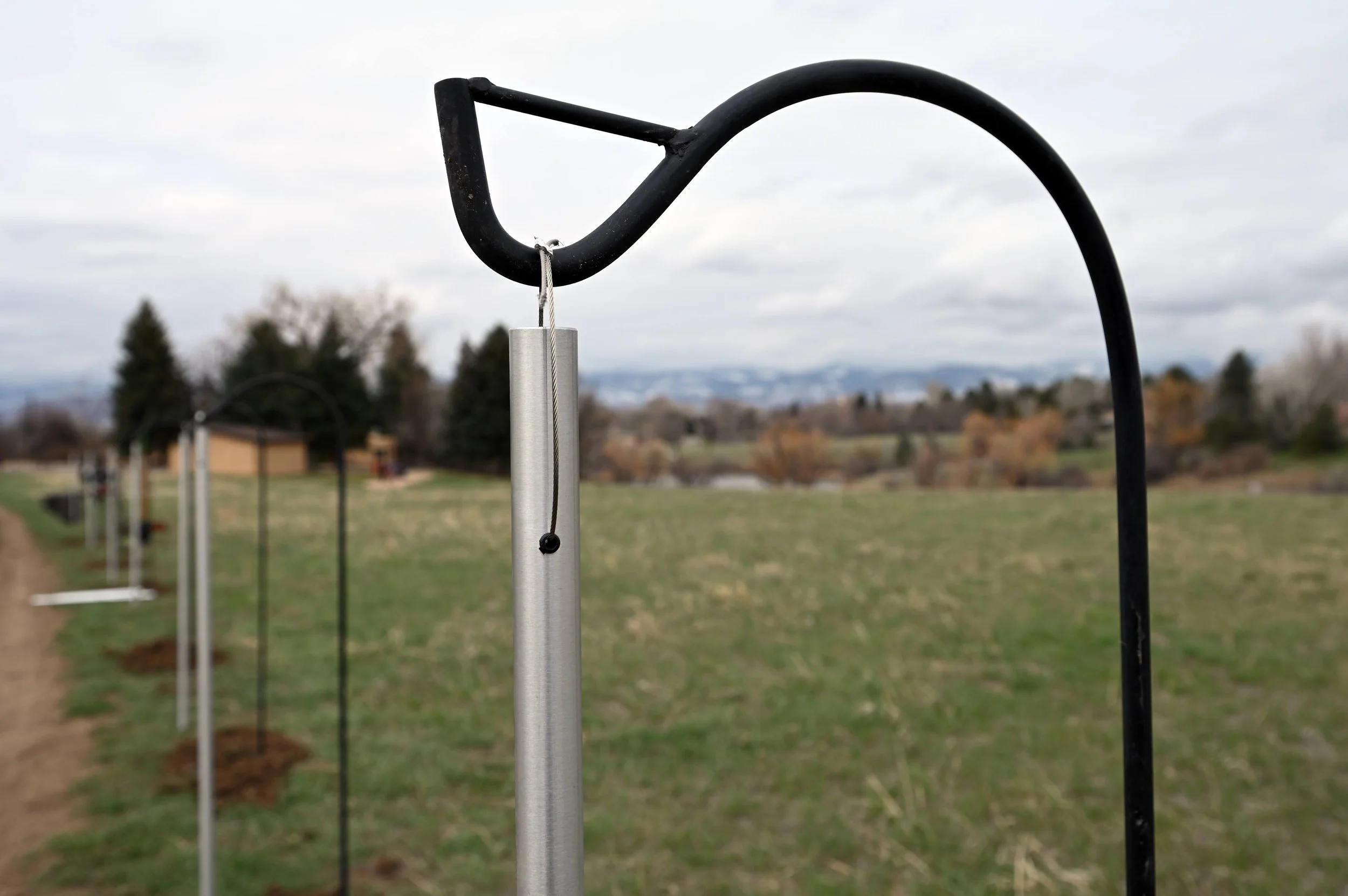Chime Walk II is comprised of 11 tuned wind chimes and iron shepherds hooks, arranged along a path in Majestic View Park. Visitors activate the piece gently as they pass along the path, and the vertical wind chimes evoke the native grasses that have been carefully tended in this area. By having these wind chimes placed in such a beautiful location, I hope that people could take a moment to stop, slow down, create sound on their own, and connect that experience to our landscape. Over the three years of their installation (which survived completely intact through the seasons!), the community has walked by and played them as the grasses grew around them; one visitor commented that countless people have taken wedding photos, baby photos, senior photos, all in front of the piece.
